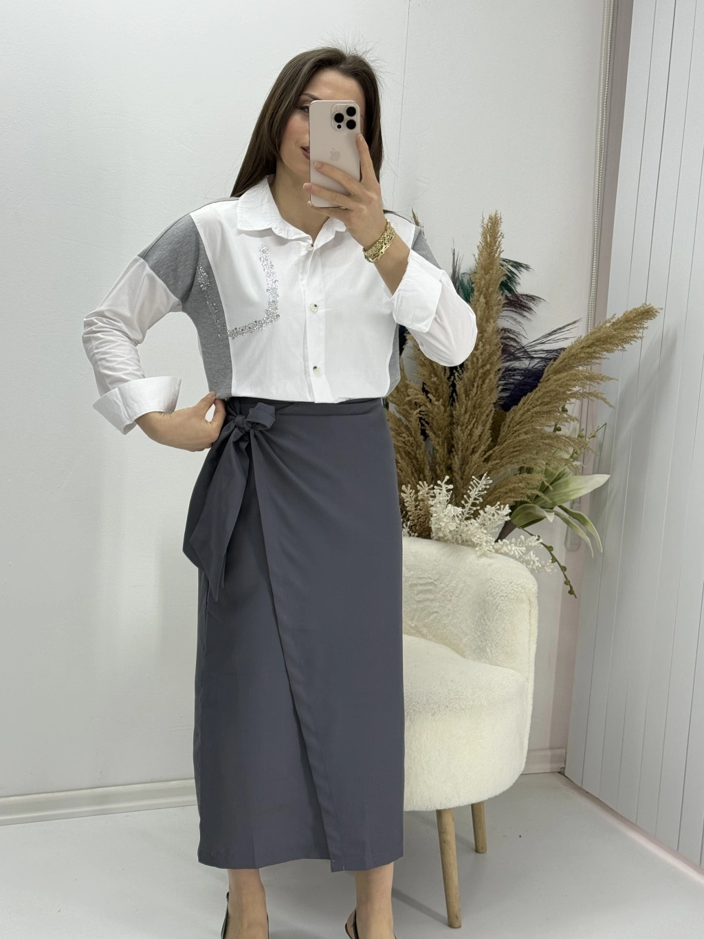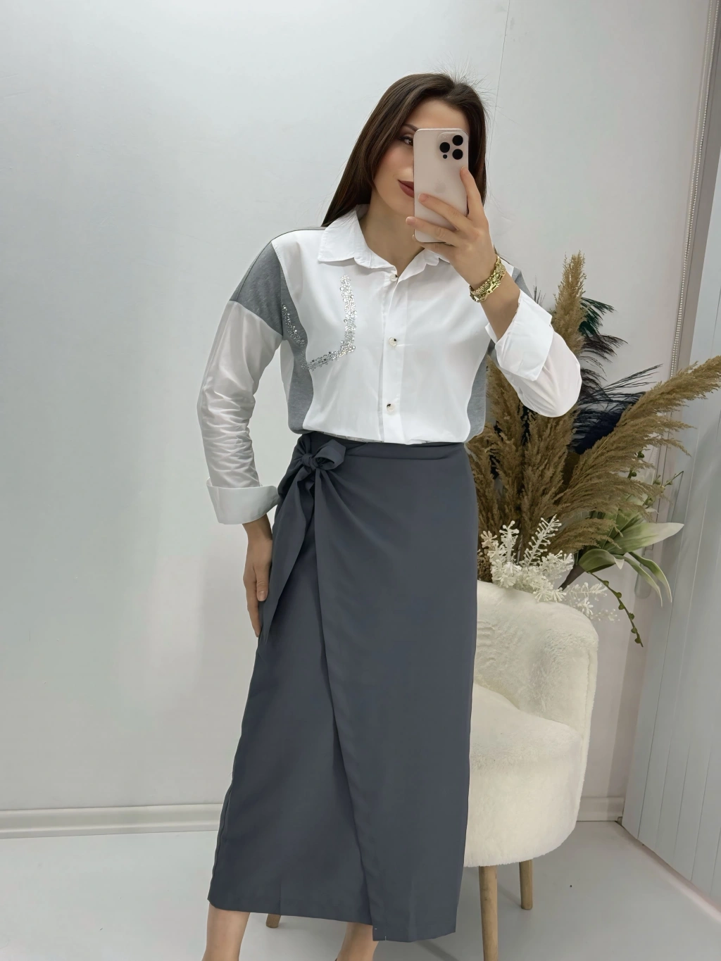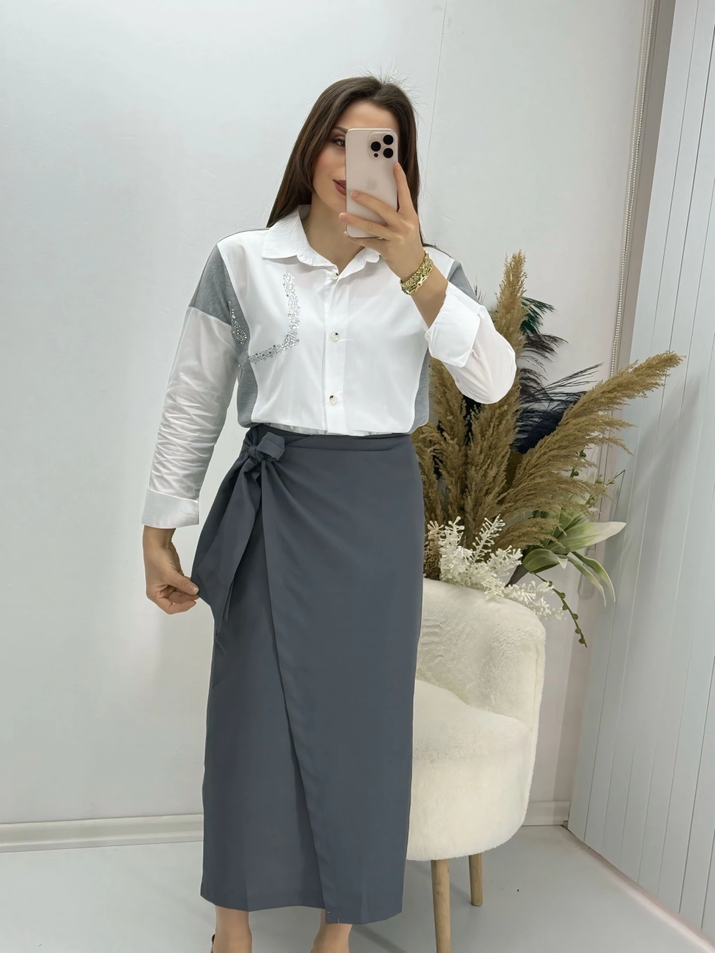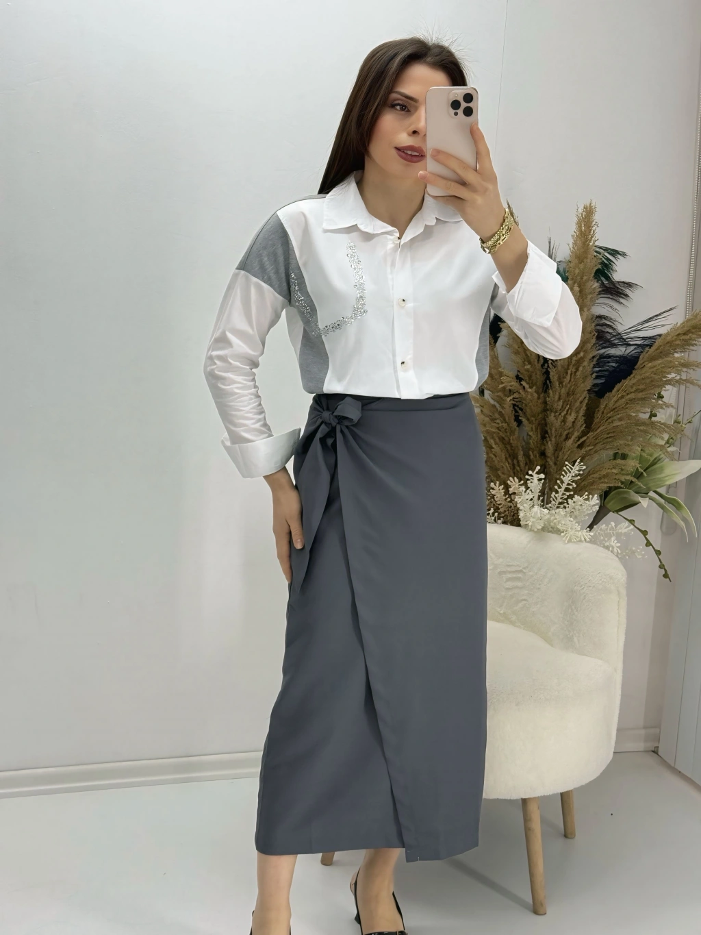 Omzu Yırtmaçlı Bele Oturan Asimetrik Kesim Takım