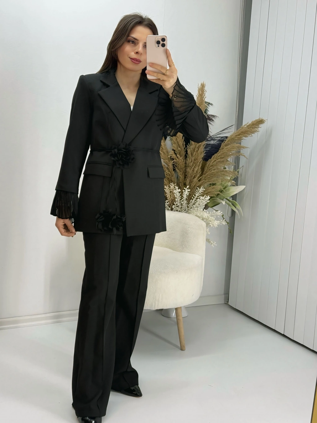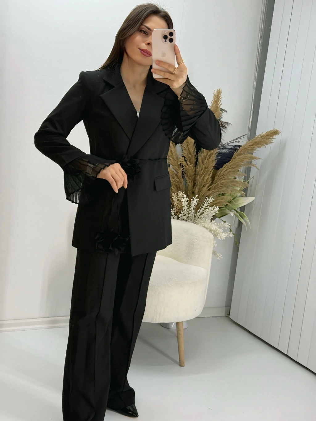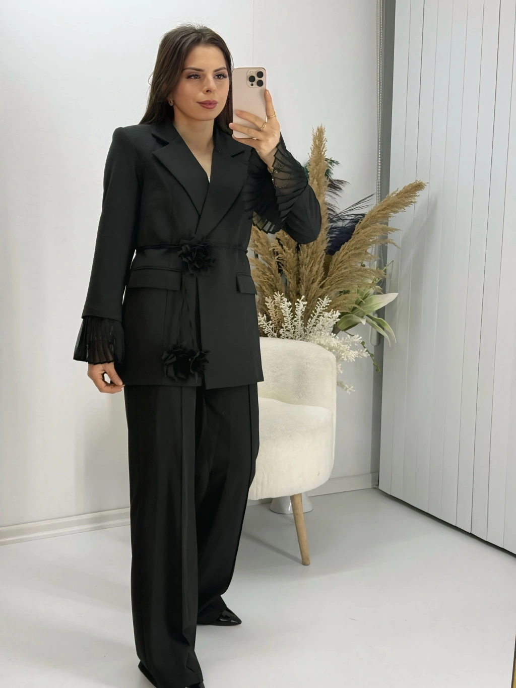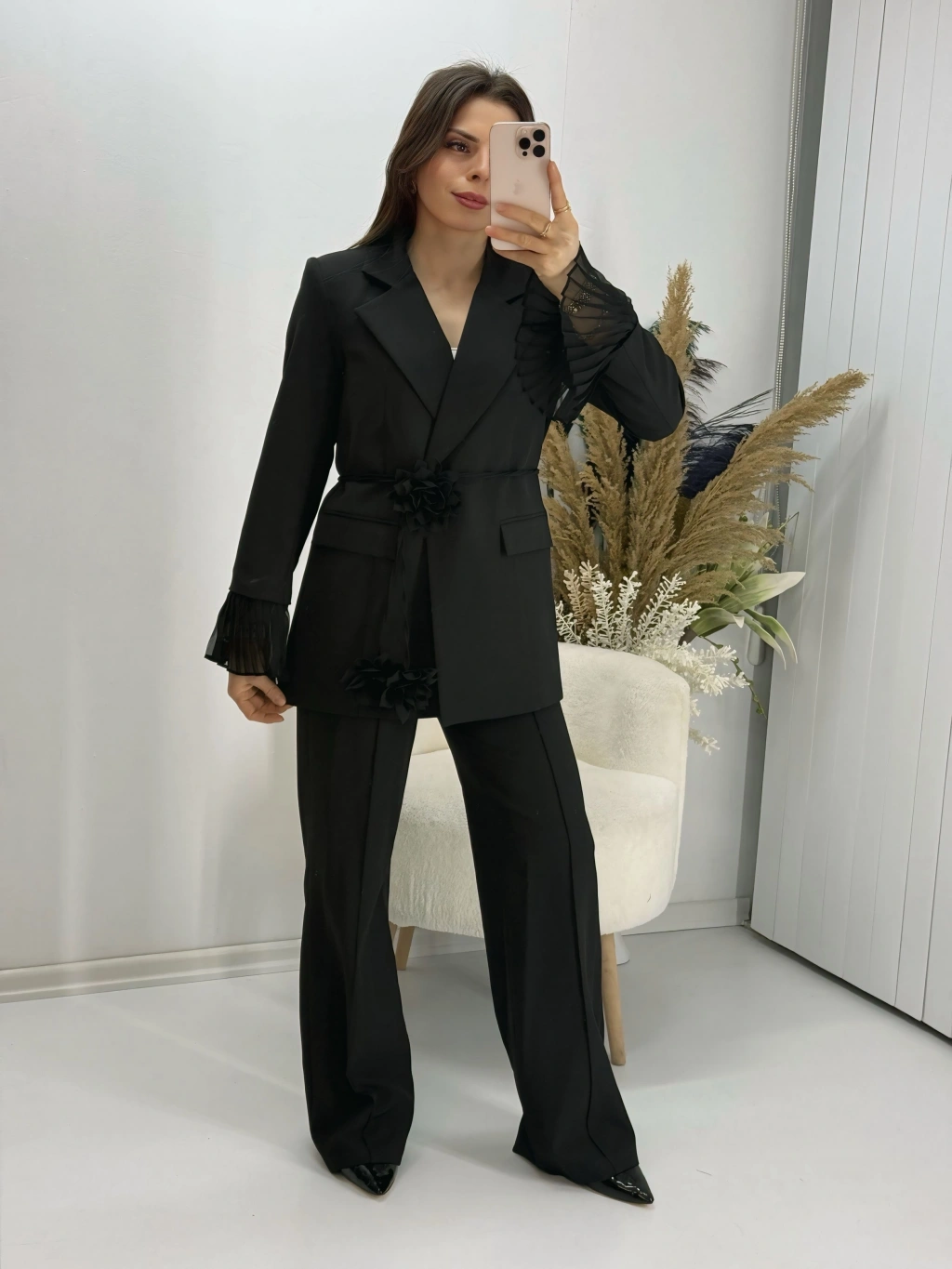 Çiçek Aksesuar Detaylı Şifon Kol Ucu Takım