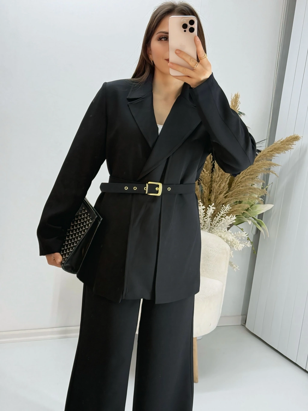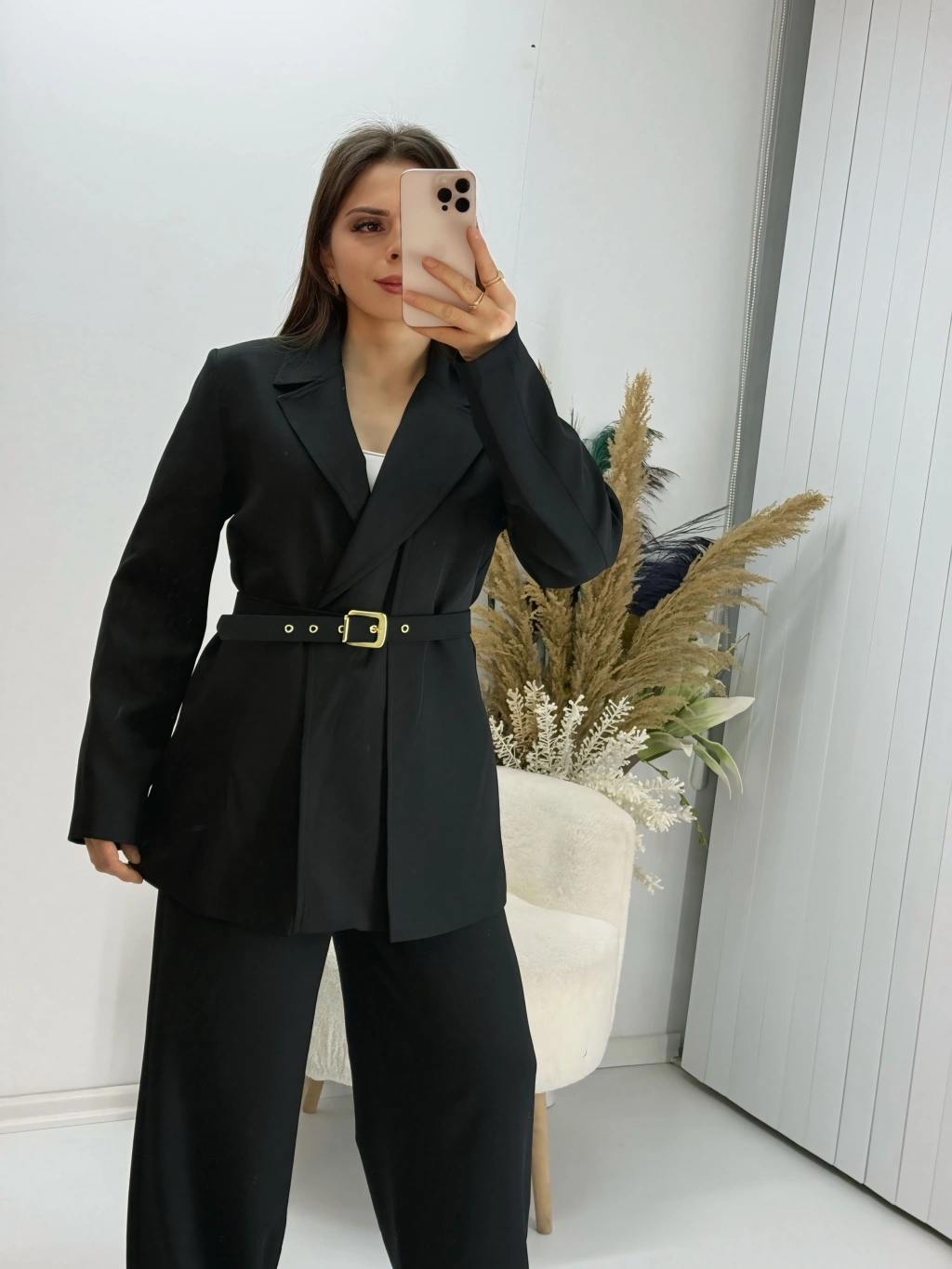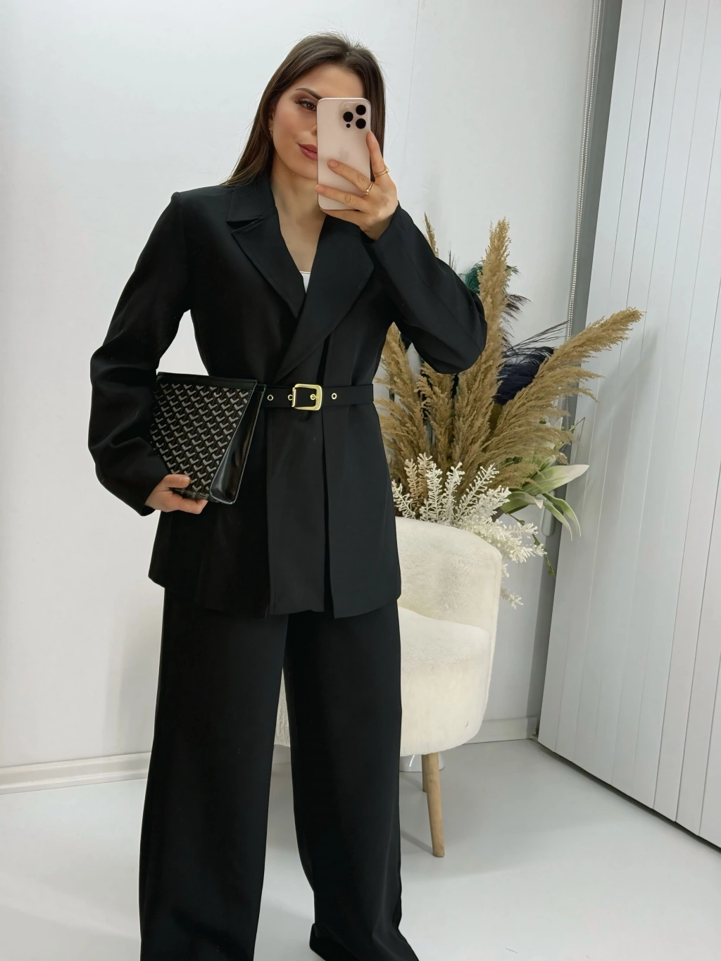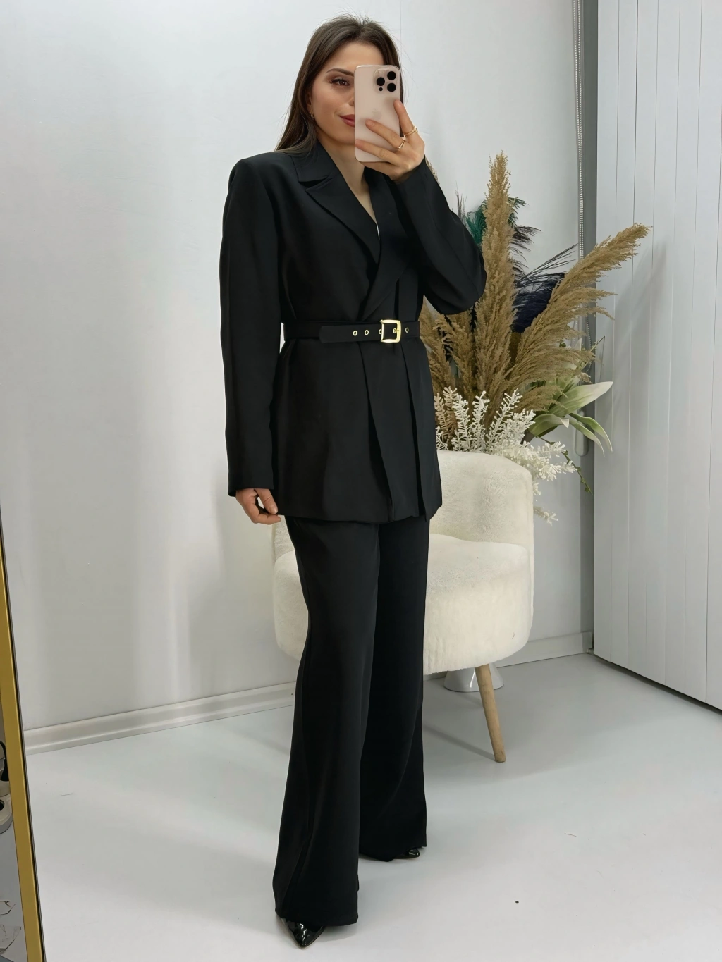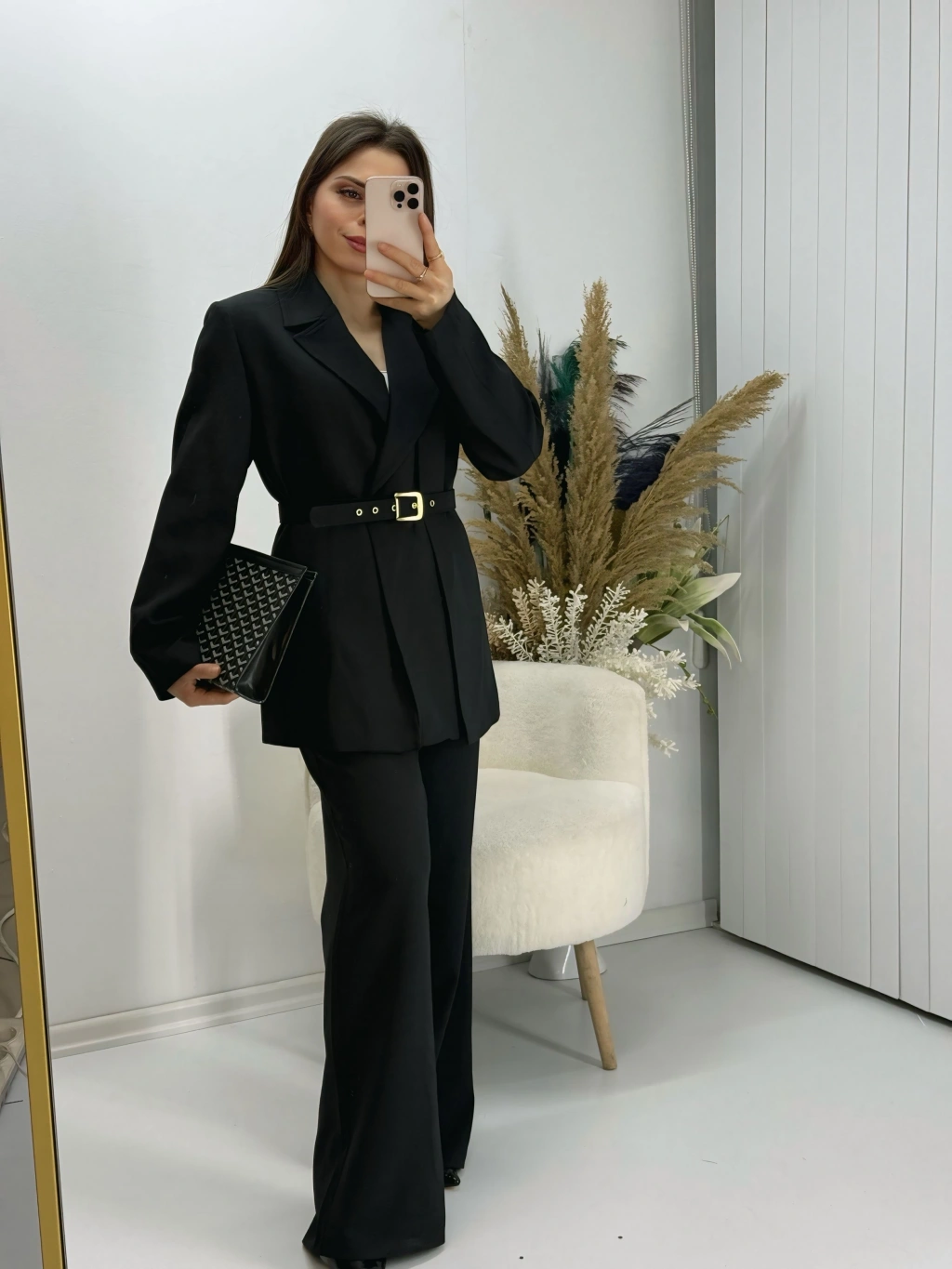 Omzu Yırtmaçlı Bele Oturan Asimetrik Kesim Takım