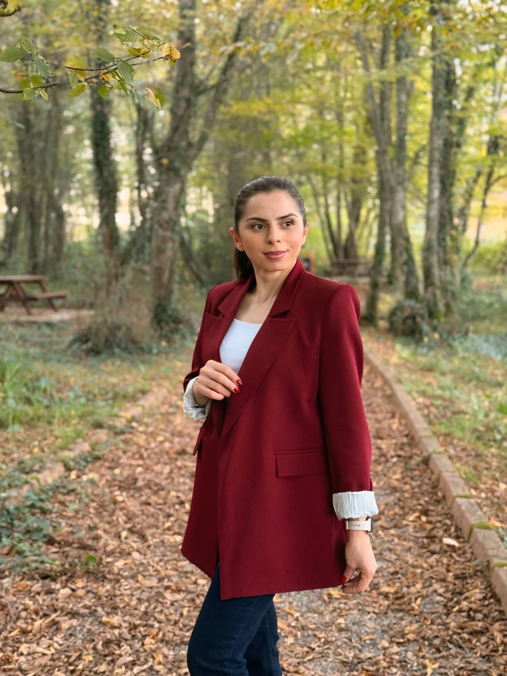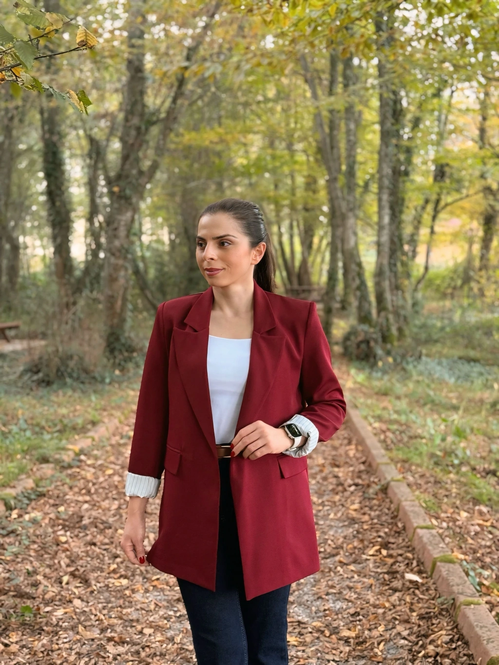 Fular detay Polo yaka kazak bordo