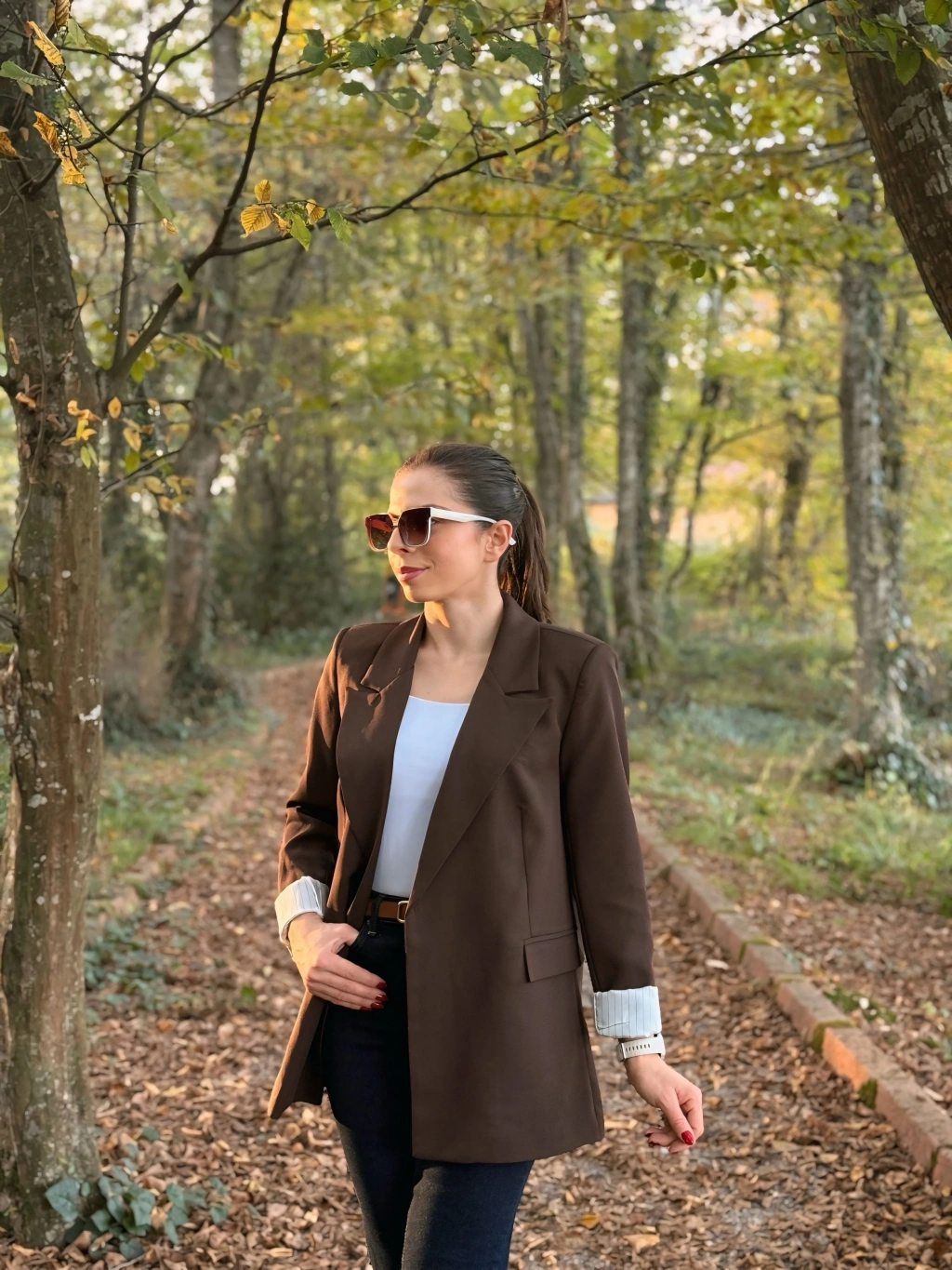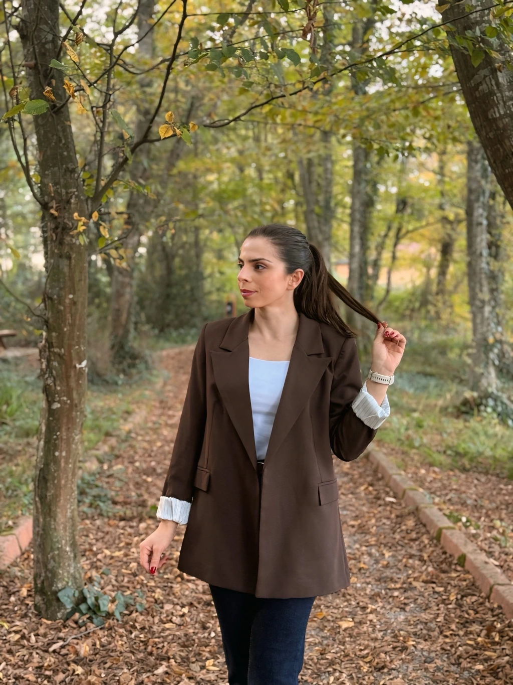 Kahve bel bağlamalı ceket