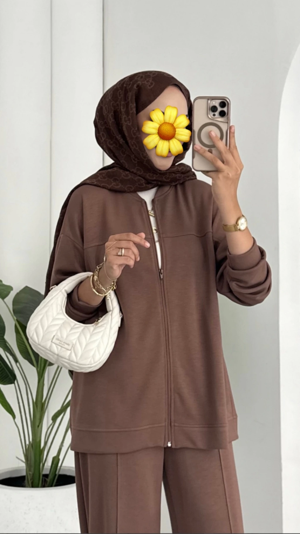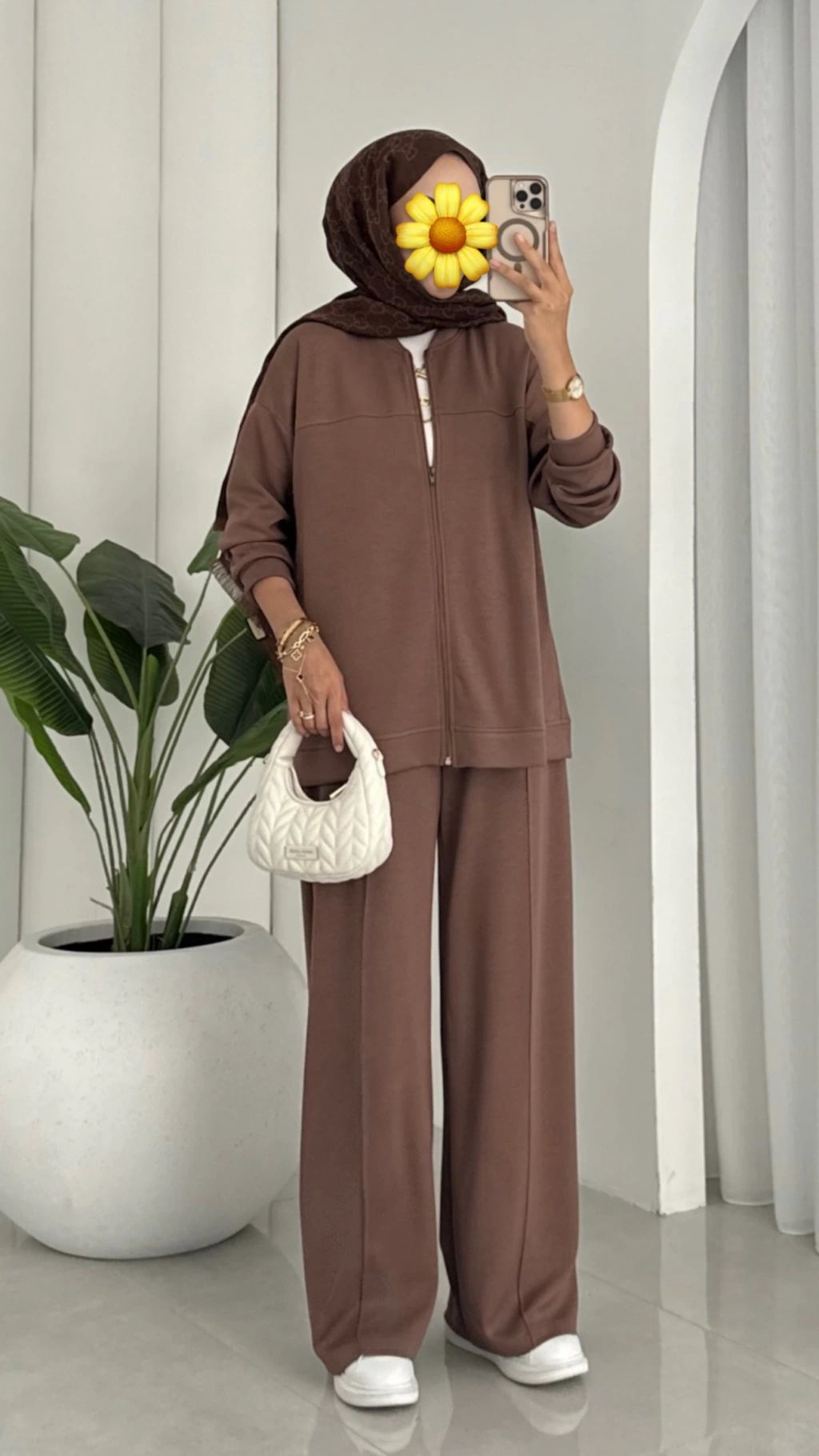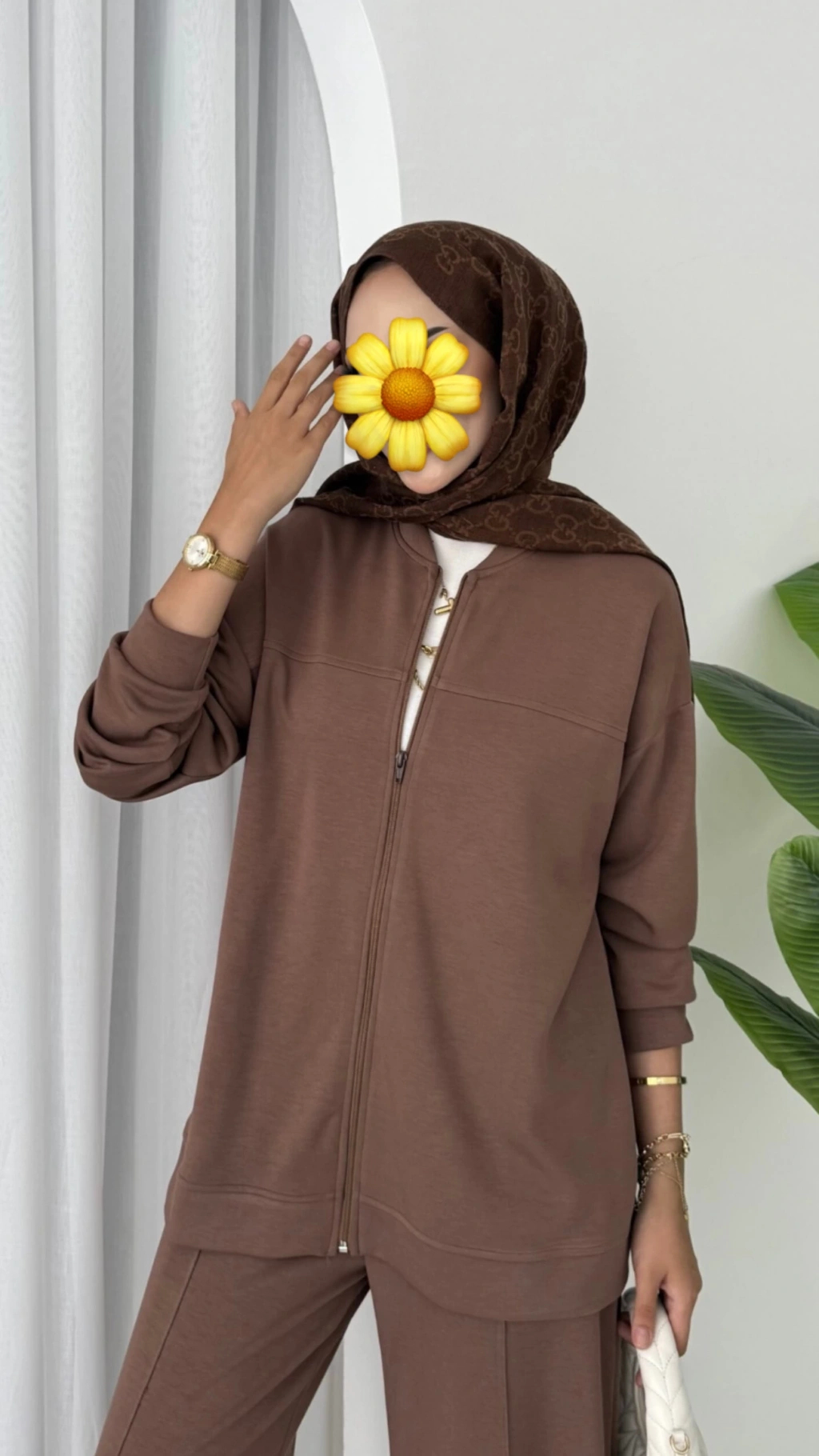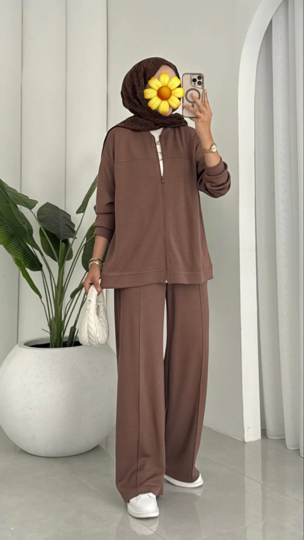Yelekli Fermuarlı Üçlü Takım Bordo