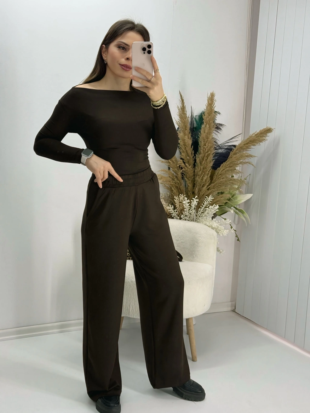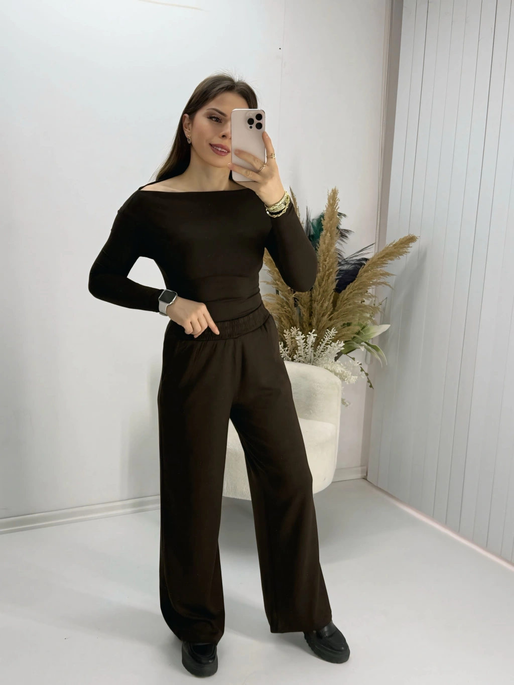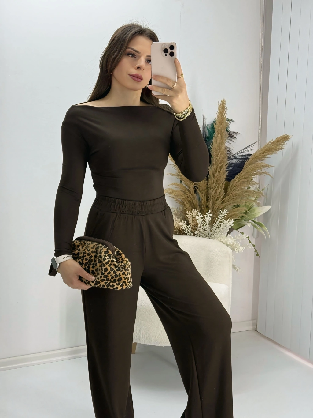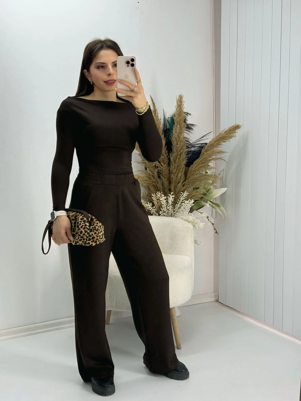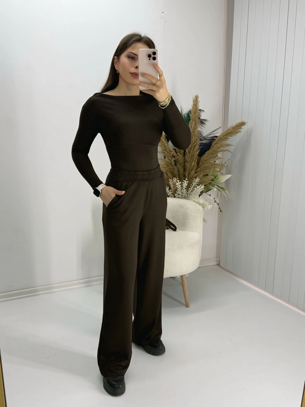 Oysho Uzun Kollu Bady Pantolon Takım Kahve
