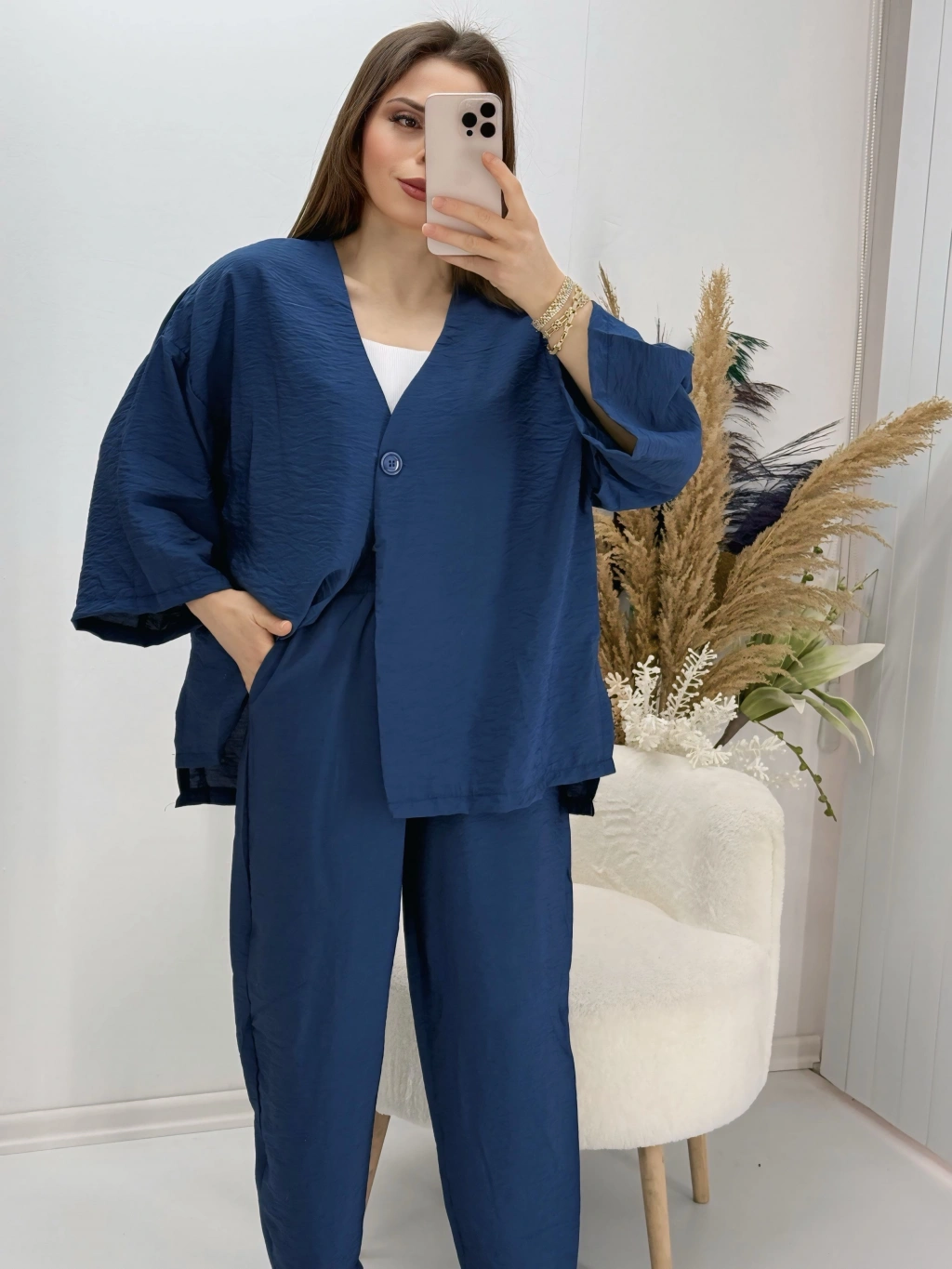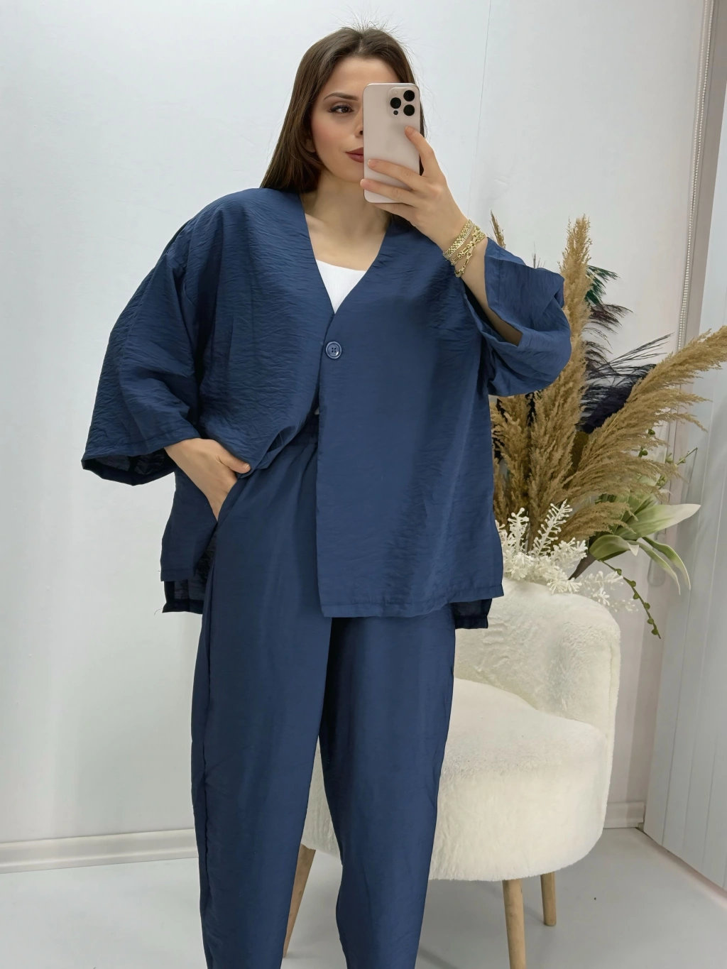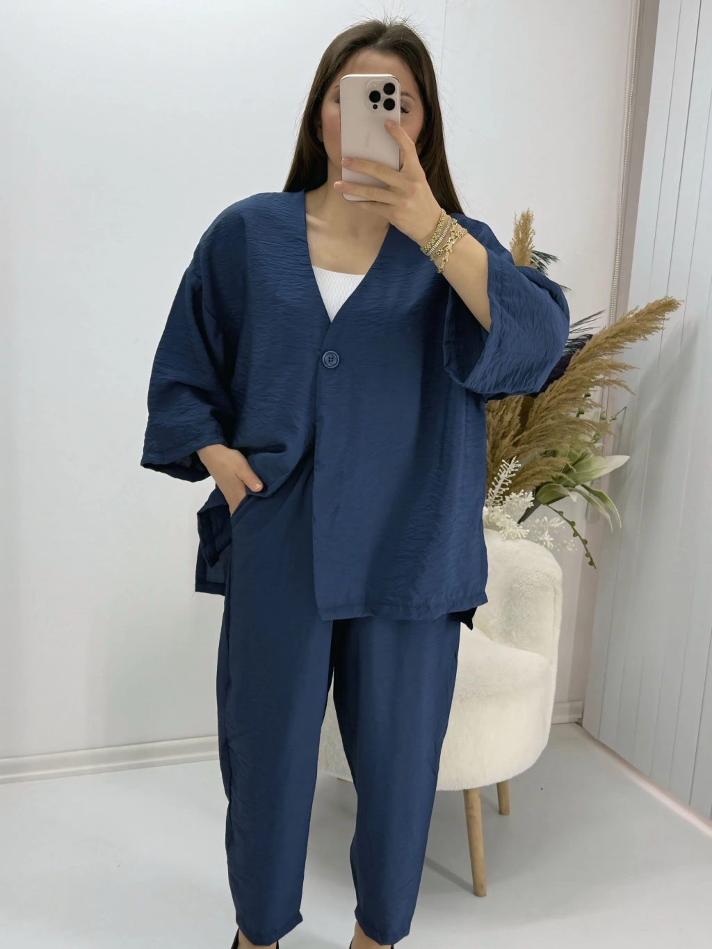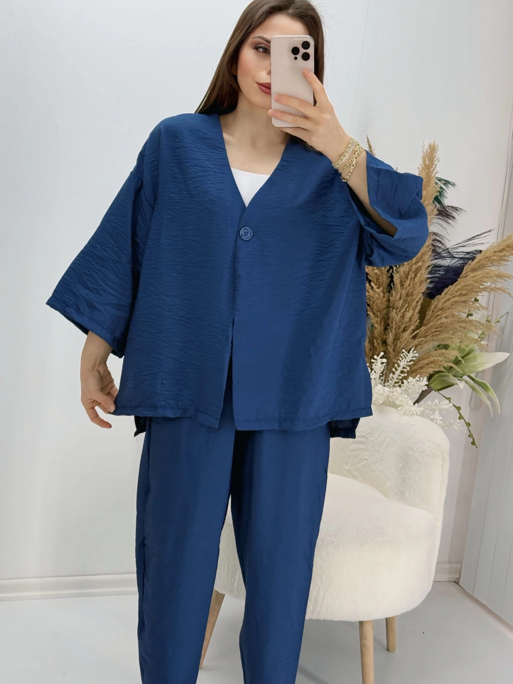 Omzu Yırtmaçlı Bele Oturan Asimetrik Kesim Takım