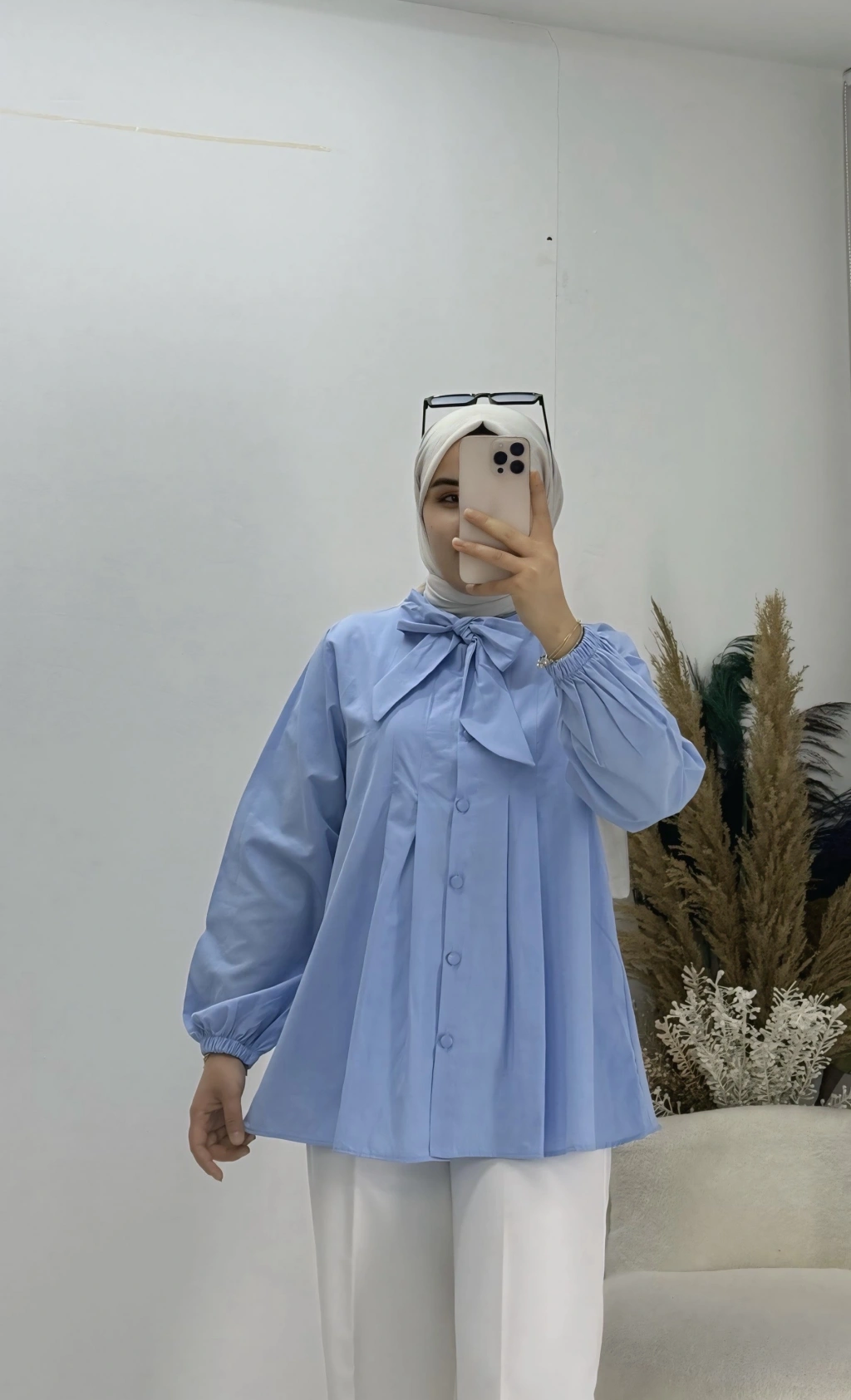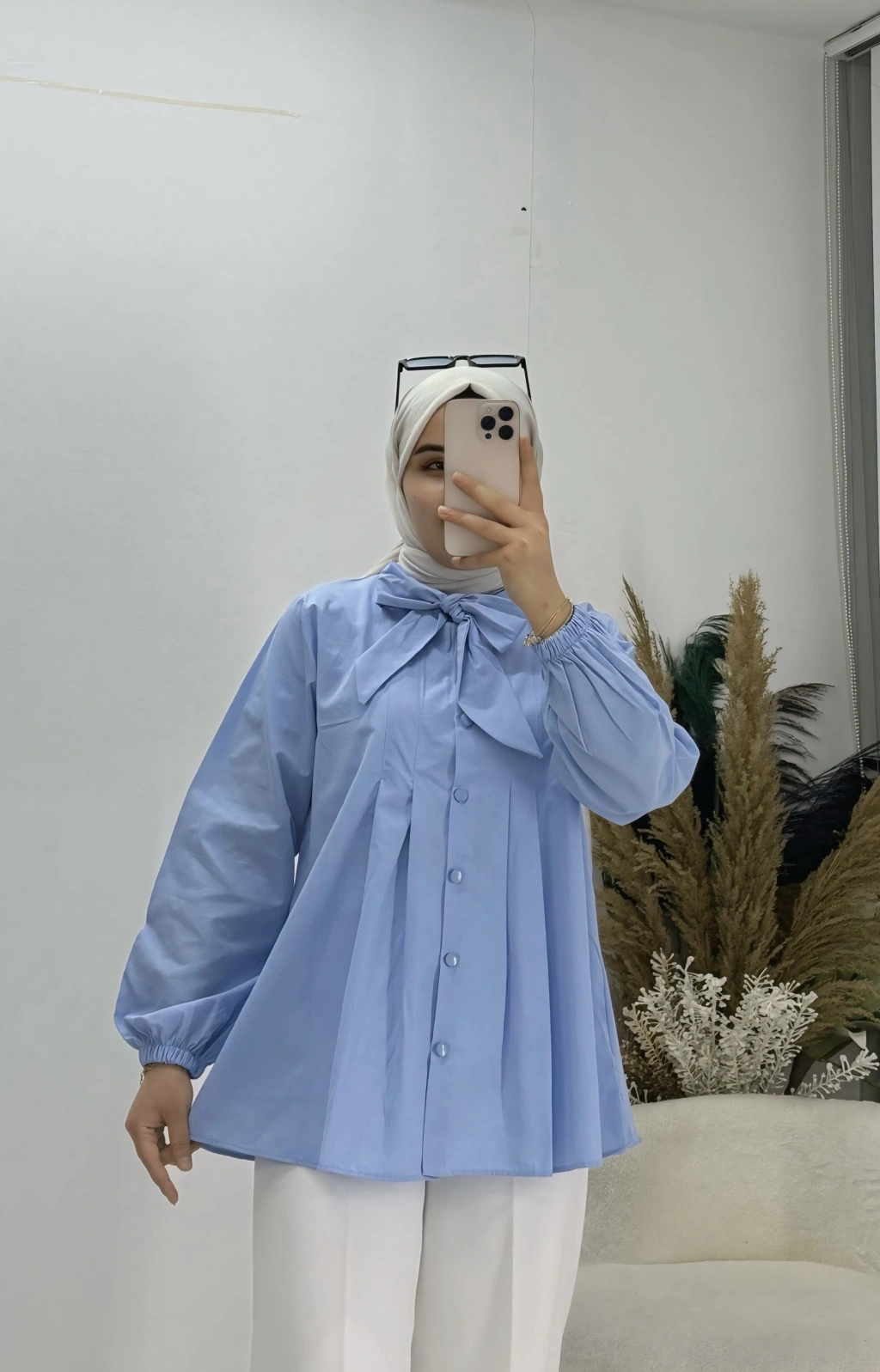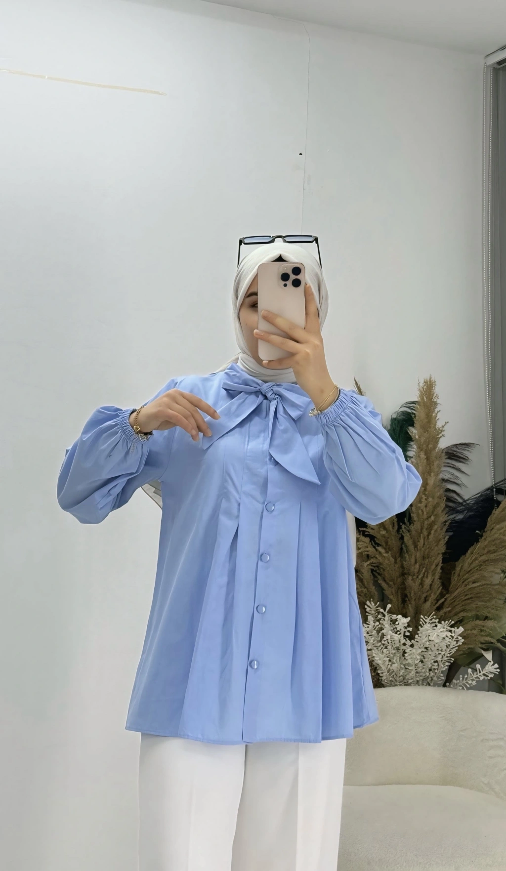 Geniş Kol Piliseli Gömlek Mavi
