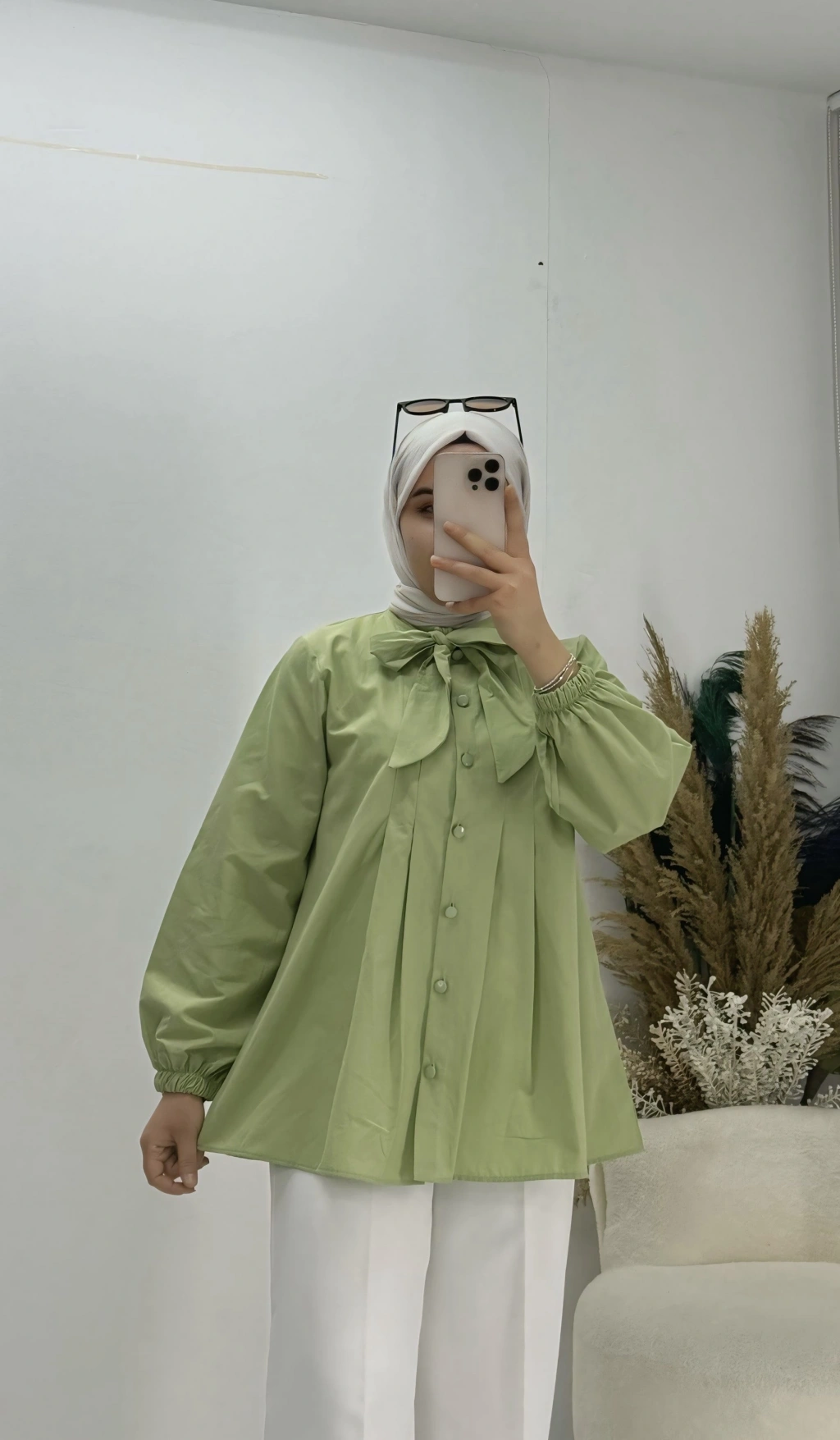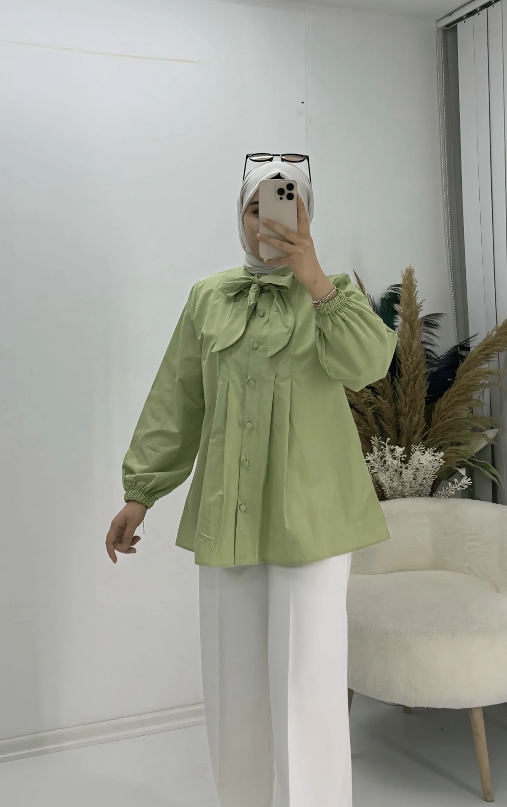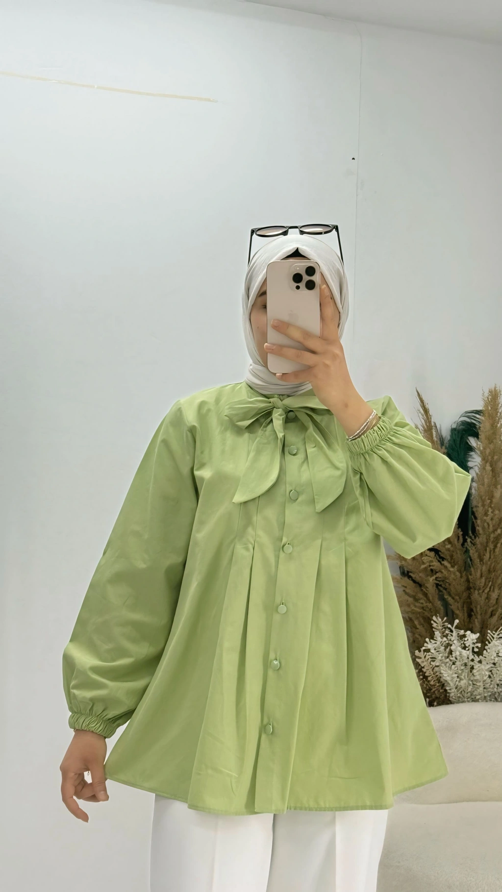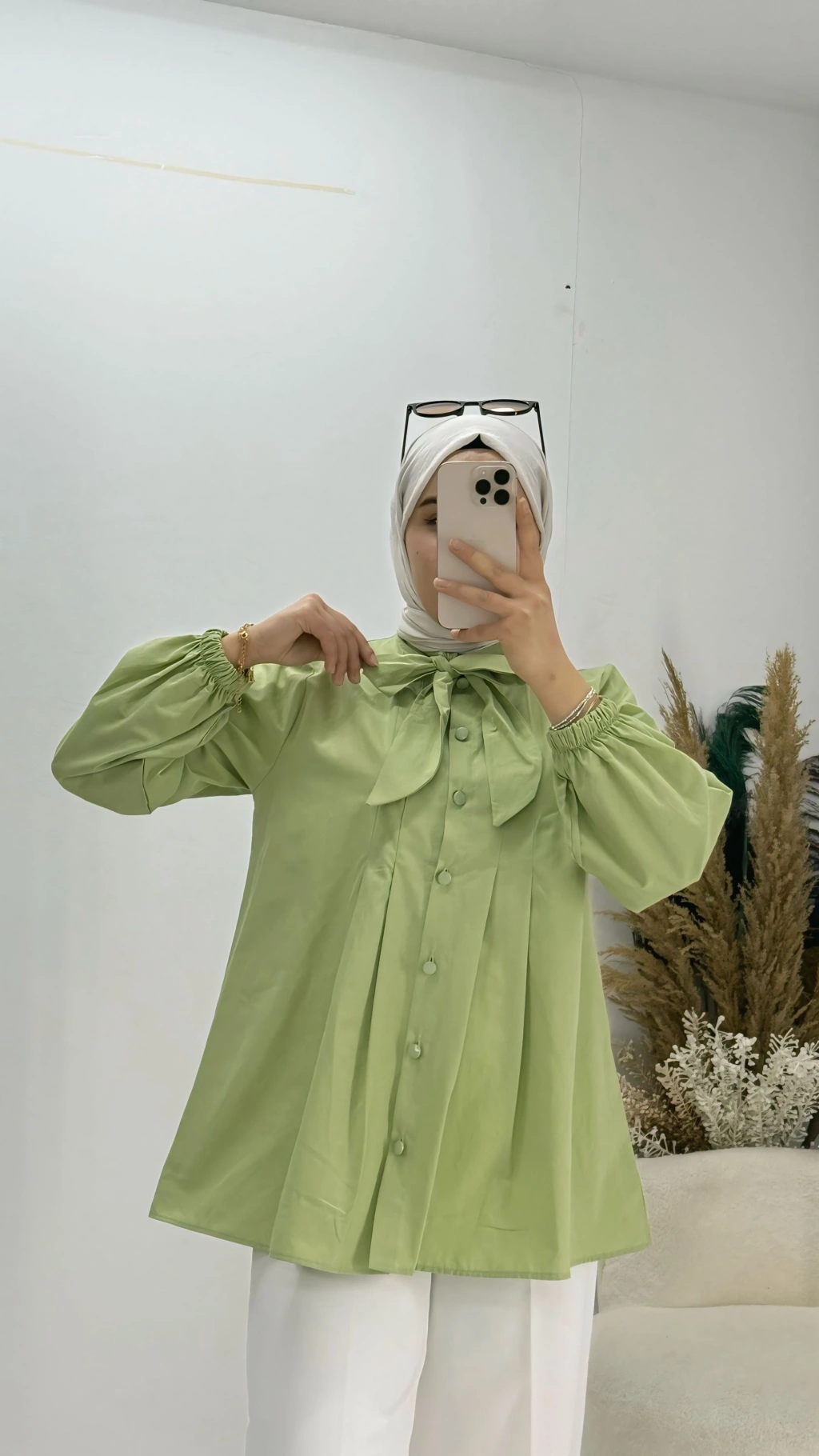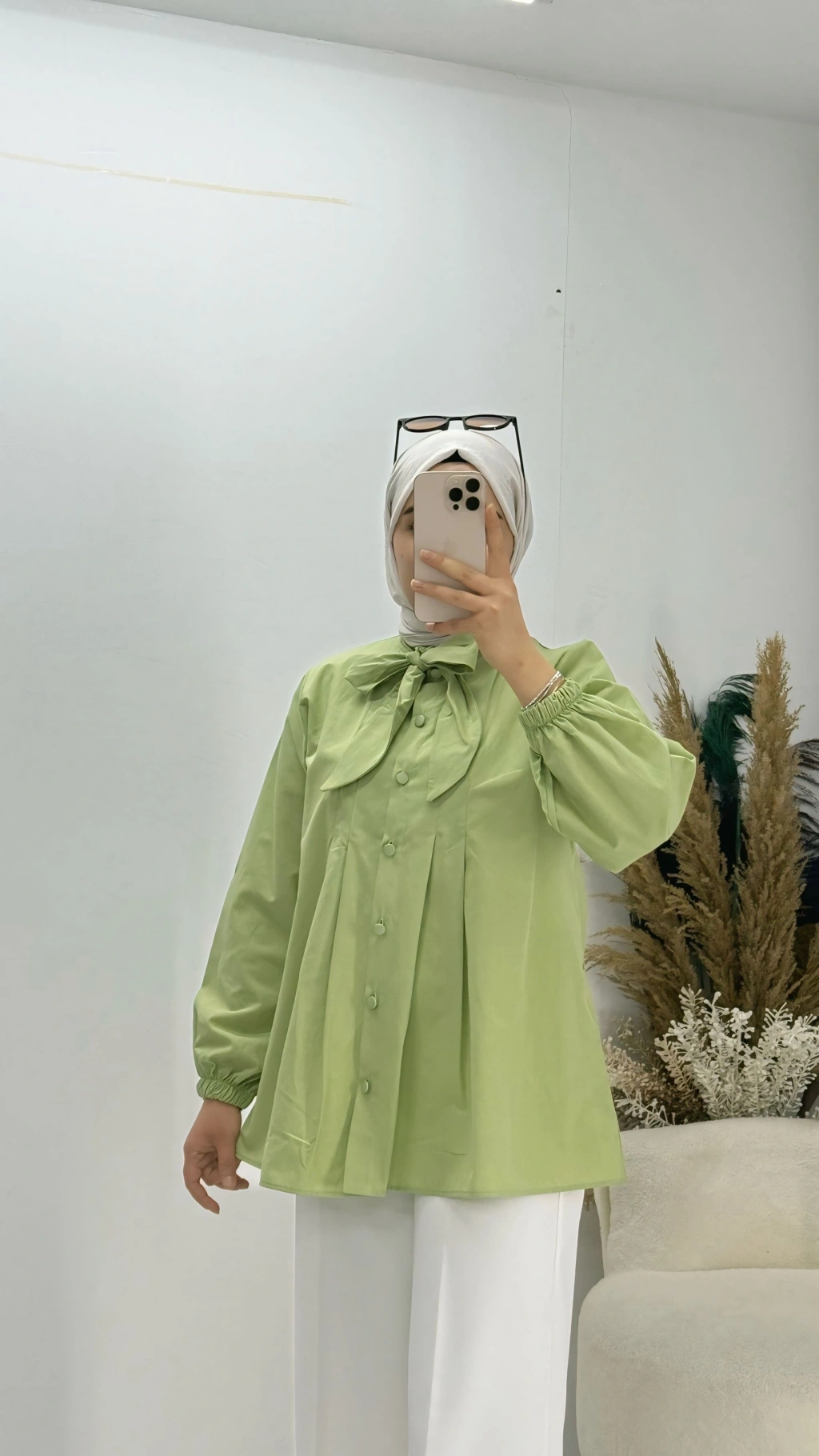 Geniş Kol Piliseli Gömlek yağ Yeşil