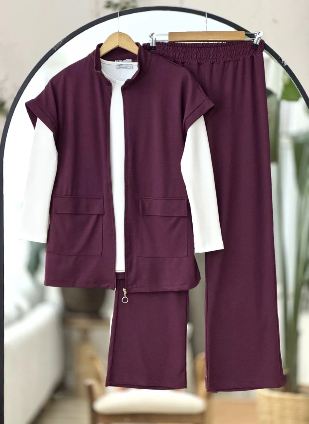 Yelekli Fermuarlı Üçlü Takım Bordo
